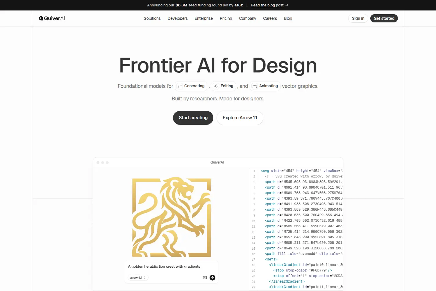 QuiverAI enables teams to create and modify editable SVG graphics, ideal for product, branding, and marketing use. It supports animation and intricate designs, catering to designers wanting control and precision. QuiverAI bridges creativity with powerful AI models for efficient design workflows.