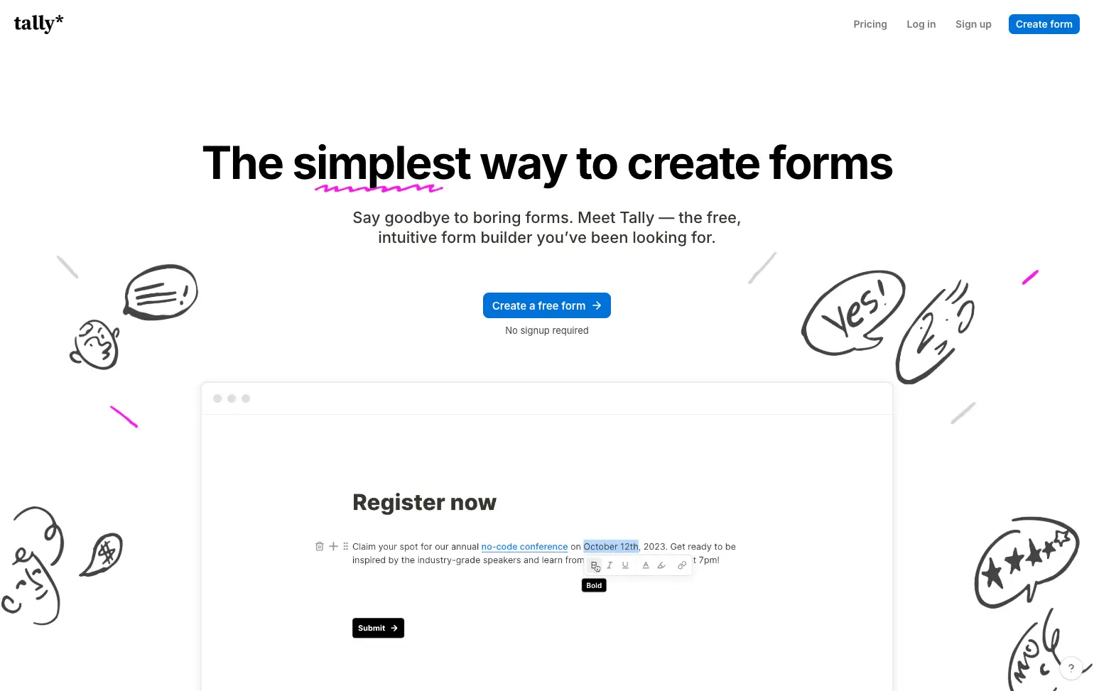 Easily create and customize forms without sign-up. Features include conditional logic, e-signatures, and integrations with popular tools. GDPR compliant, Tally ensures your data's security and privacy. Ideal for creators, businesses, and educators looking for a hassle-free solution.