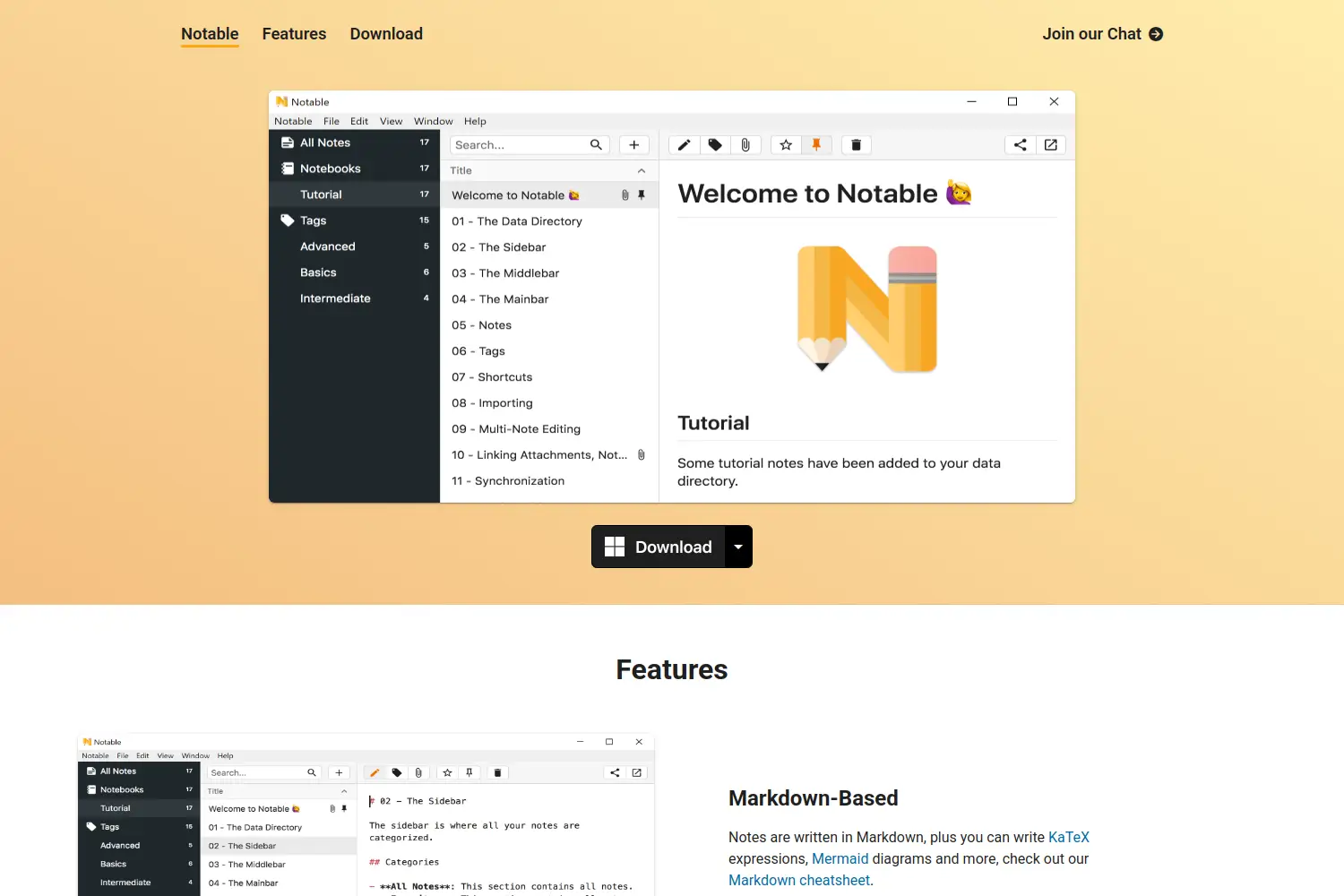 Notable offers a versatile Markdown-based note-taking experience with features like multi-note editing, dark and zen modes, and strong syntax highlighting. Sync securely with paid cloud features; use free for basic on-desktop editing with external tools support.