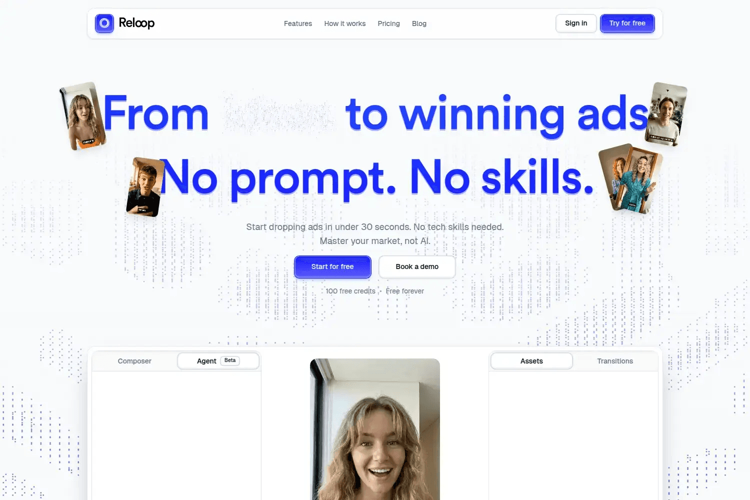 Reloop is built for one goal: turning product ideas into winning UGC ads fast. You do not write prompts or manage complex settings.