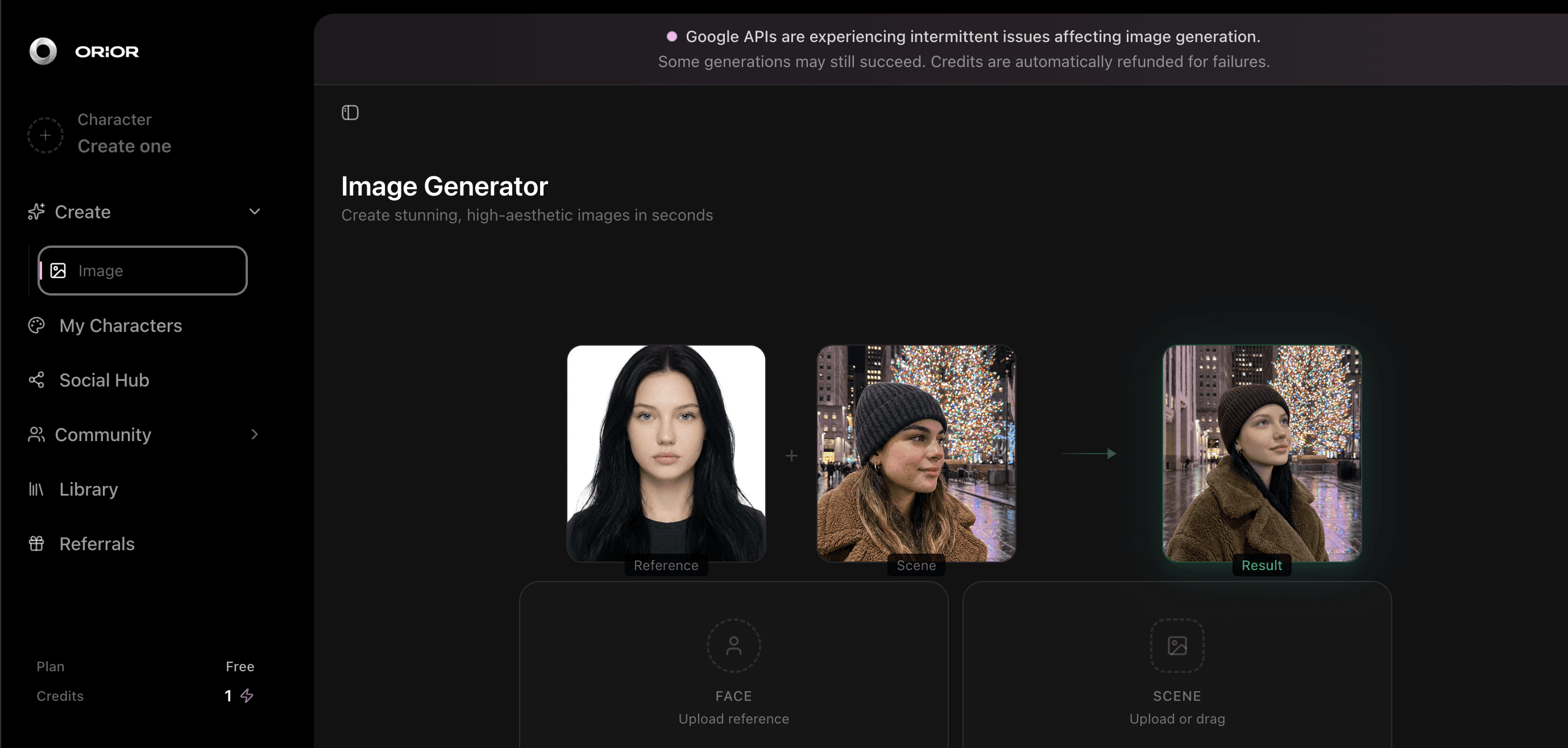 Orior is built for creators who want full control over UGC visuals. It focuses on realistic characters, exact poses, and consistent identity across images and videos. You can create content using a text prompt or a reference image.