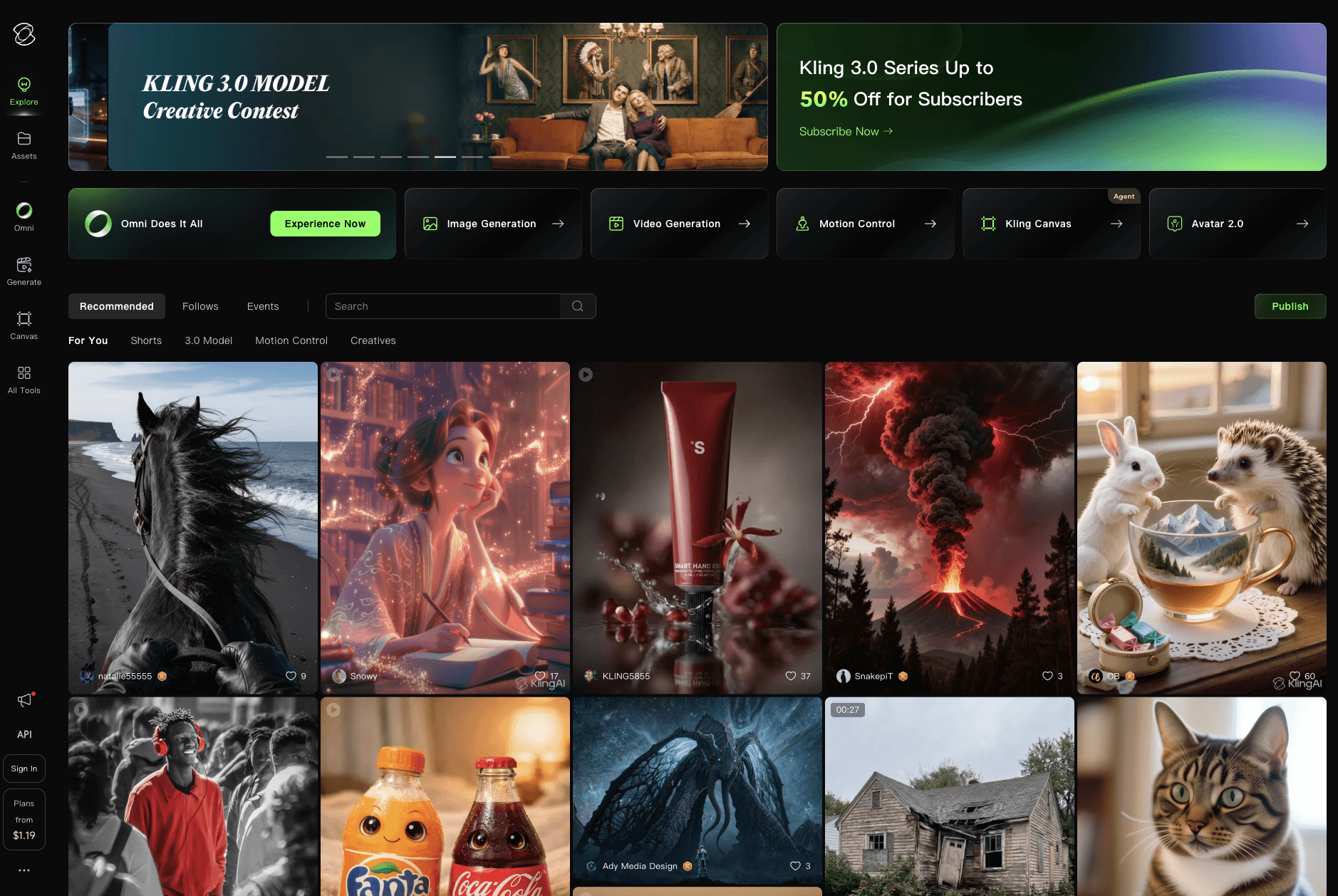 The platform supports text-to-video and image-to-video generation with tools for motion control, lip sync, digital humans, and multi-shot storytelling. You can describe a scene, animate an existing image, or generate multiple shots that feel like part of the same video. Kling also supports native audio, voice control, and storyboard-style generation in newer models like Video 3.0 Omni.