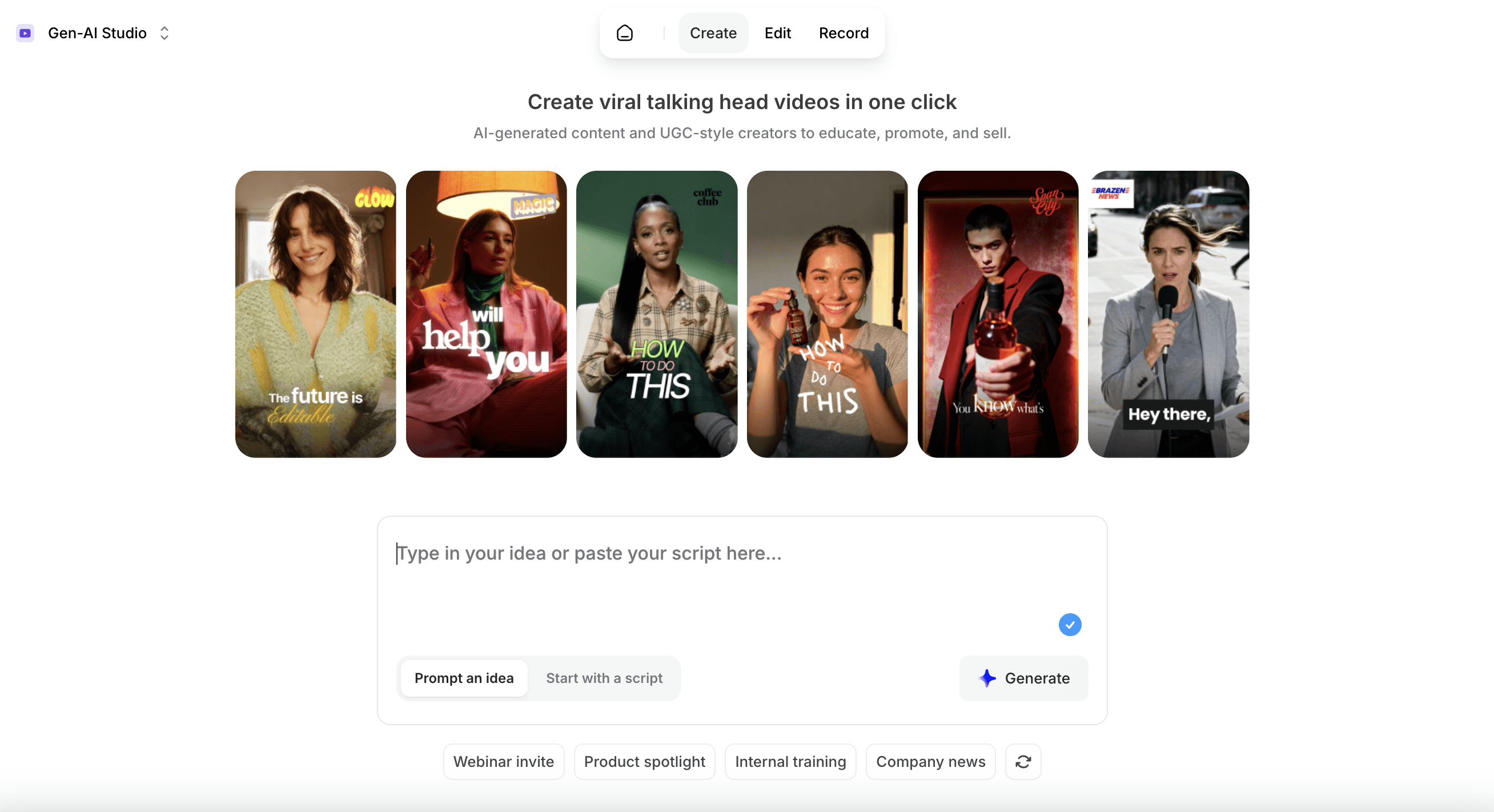 They let you create short, creator-style videos without filming anything. You add a script, select an AI person or voice, and get a video in minutes. This makes it easier to test hooks, angles, and ads without depending on real creators.