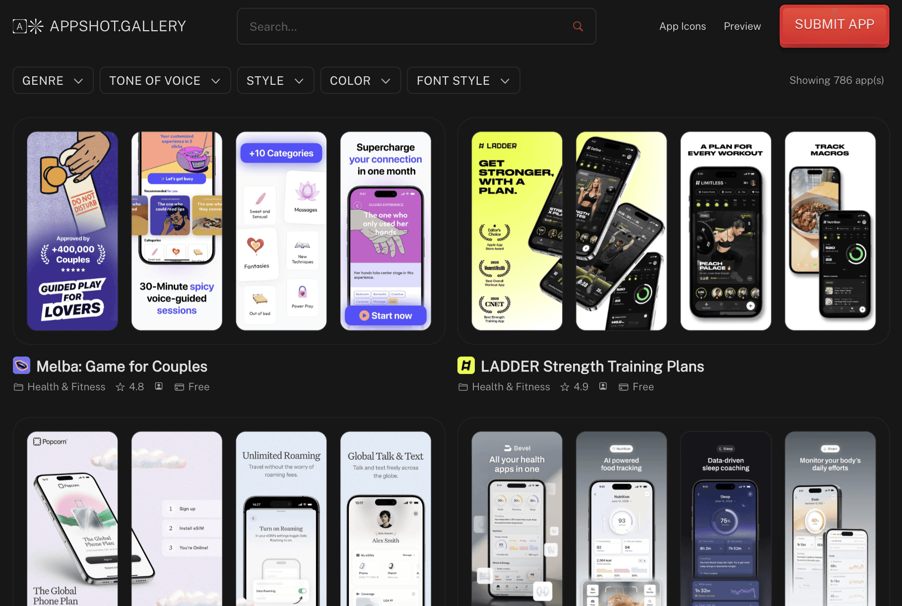 You can explore hundreds of handpicked screenshots across different categories. This helps you study patterns like headline styles, feature breakdowns, color use, and overall flow from first screen to last. It is useful when you want to improve your app listing or find ideas that already work in similar apps.