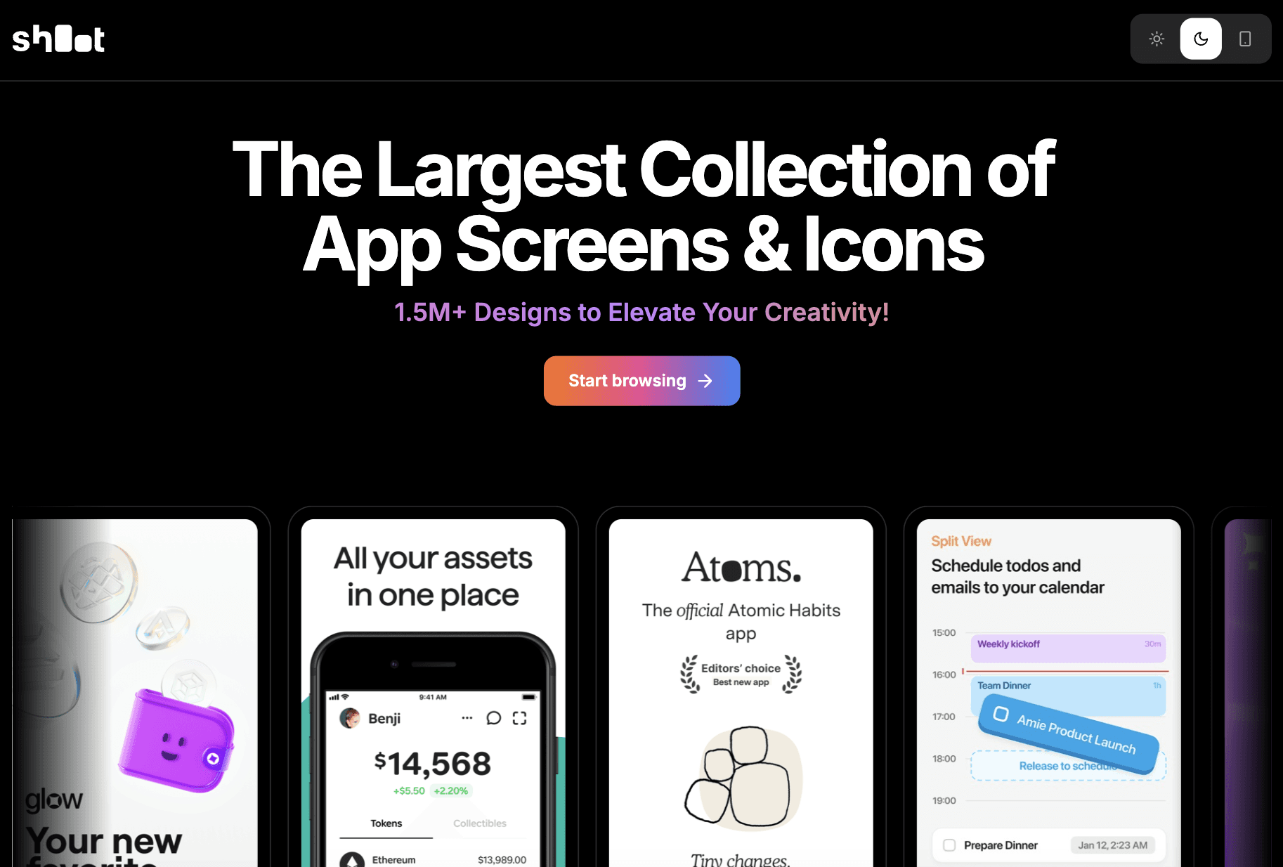 Shoot.Design is a simple, focused gallery for App Store screenshots and icons. It helps you explore real app visuals in one place so you can quickly understand what works and what does not. The site is built for inspiration, not tools or editing, so you can stay focused on ideas and patterns.