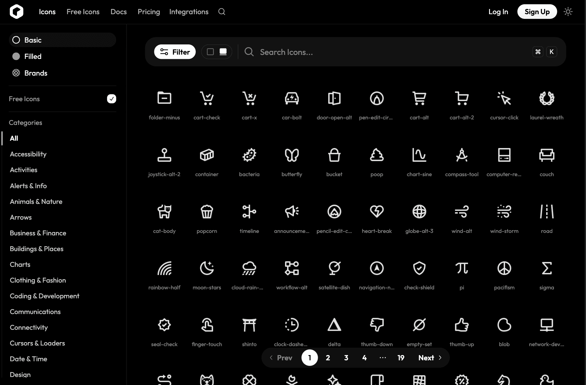 The library offers multiple styles and weights, so you can match different design needs. Icons are consistent and organized across 40+ categories, which makes searching easy.