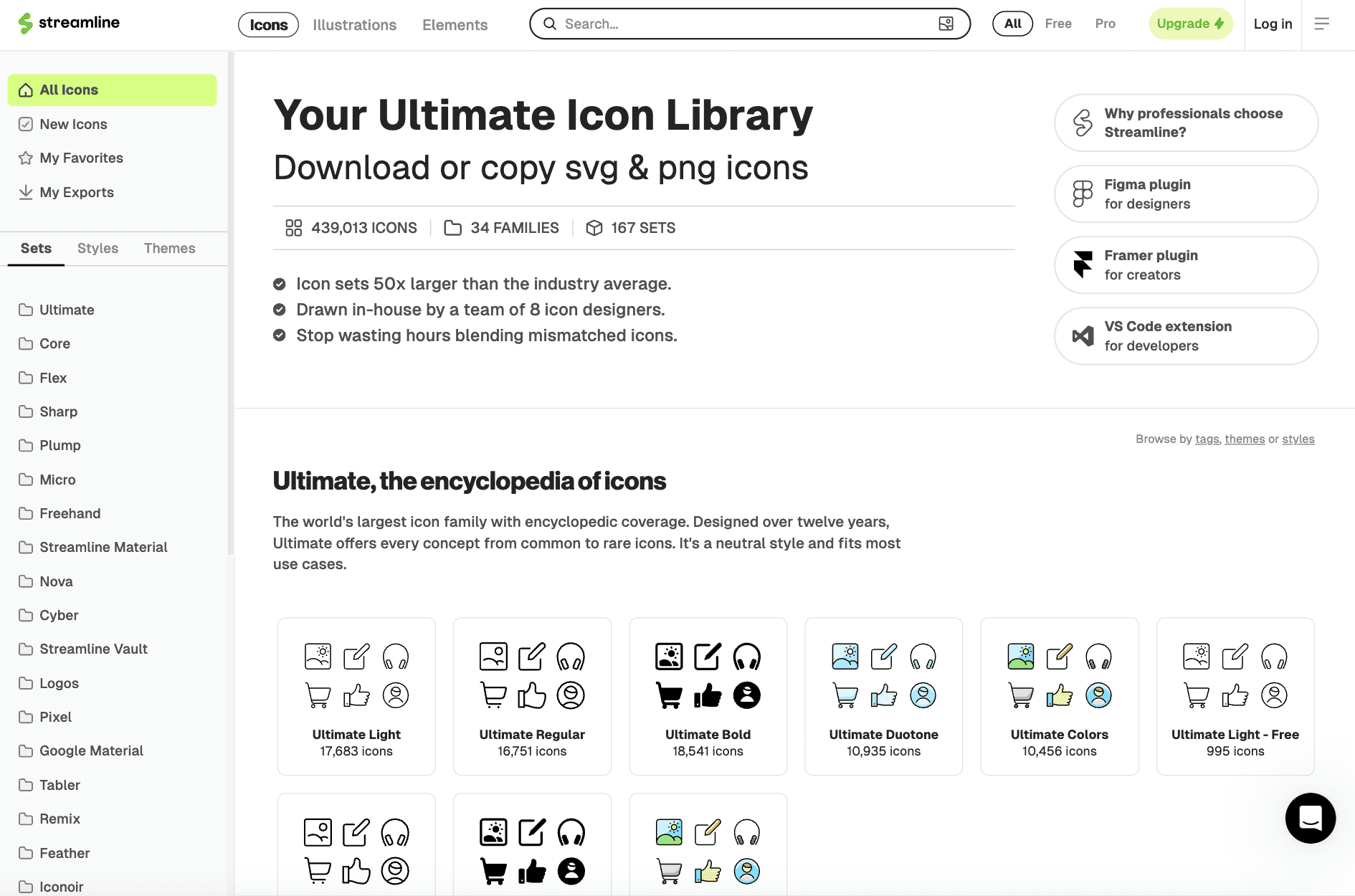 Streamline also focuses on speed. You can search across all icon sets, save favorites, and download multiple icons in one click. It even offers an API to plug icons directly into your product. The free plan gives access to a limited set of icons.