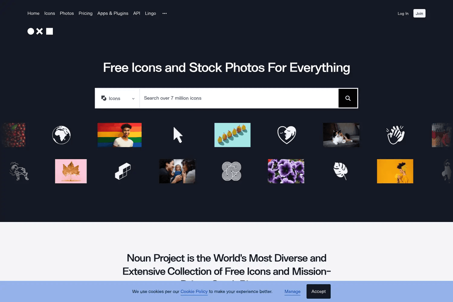 The Noun Project is one of the largest icon libraries available. It offers millions of icons, symbols, and even stock photos, all contributed by designers from around the world. You can find almost anything here, from basic UI icons to detailed cultural and niche symbols.