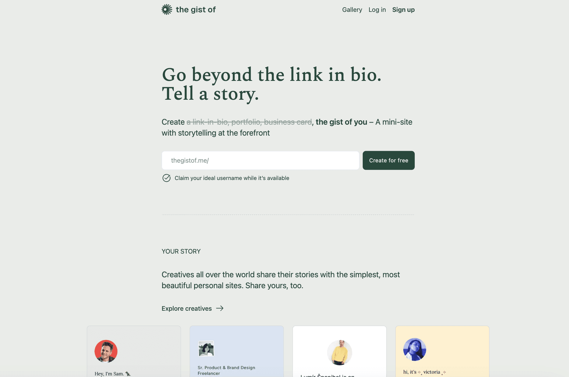 The gist of is a link in bio tool for storytelling, not just links. Instead of buttons, it helps you create a small personal site that feels like a portfolio, resume, or digital identity. It works well for designers, writers, photographers, and creatives who want context around their work.
