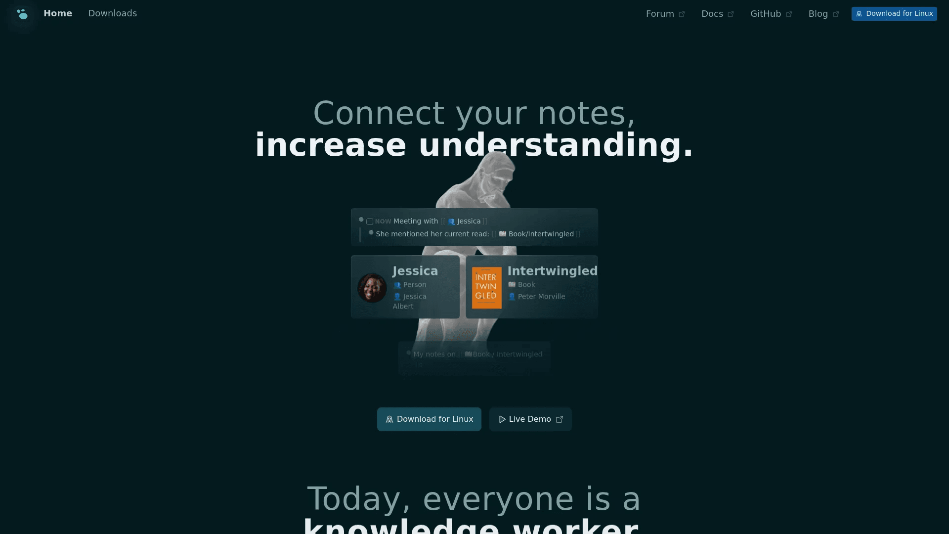 Logseq is built for thinking in outlines. Every note works as blocks, so you can break ideas into small pieces and connect them easily. It uses Markdown and stores everything locally, so your data stays private and future-proof.