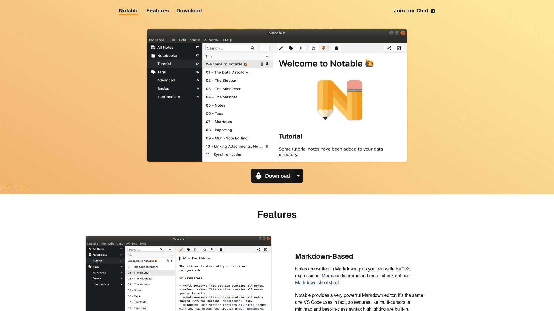 Notable is a simple Markdown app built for people who like control and clean writing. It uses a powerful editor similar to VS Code, so you get features like multi-cursor editing, syntax highlighting, and a minimap. Writing feels fast and precise, especially if you work with code or structured notes.