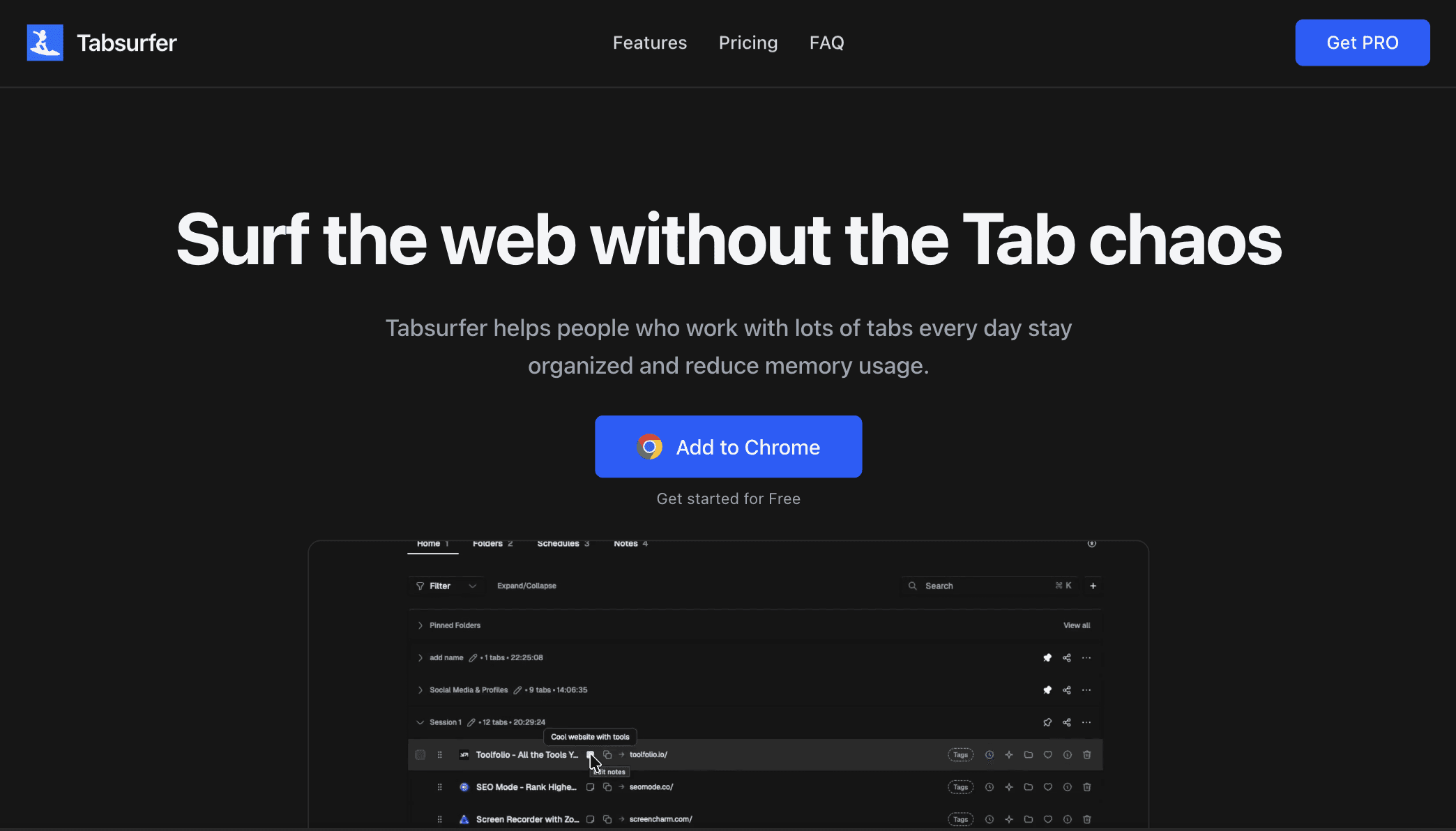 It handles tab organization, session saving, folders, tags, quick search, schedules, and more without slowing your browser. For anyone looking for a solid Chrome tab manager or a Chrome tab group extension to reclaim focus and reduce clutter, Tabsurfer is highly recommended.