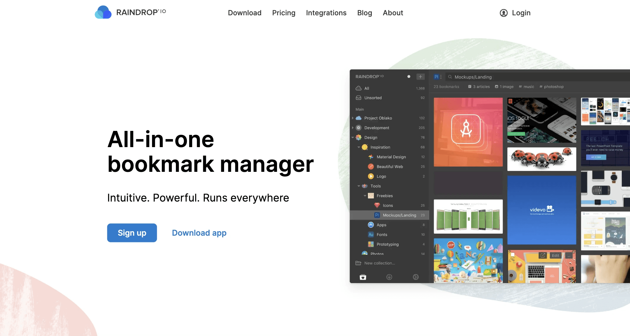 Raindrop is a modern bookmark manager built for both creativity and heavy research. It helps you save anything from the web, articles, videos, PDFs, images, and full pages, and keeps everything organized in clean collections.