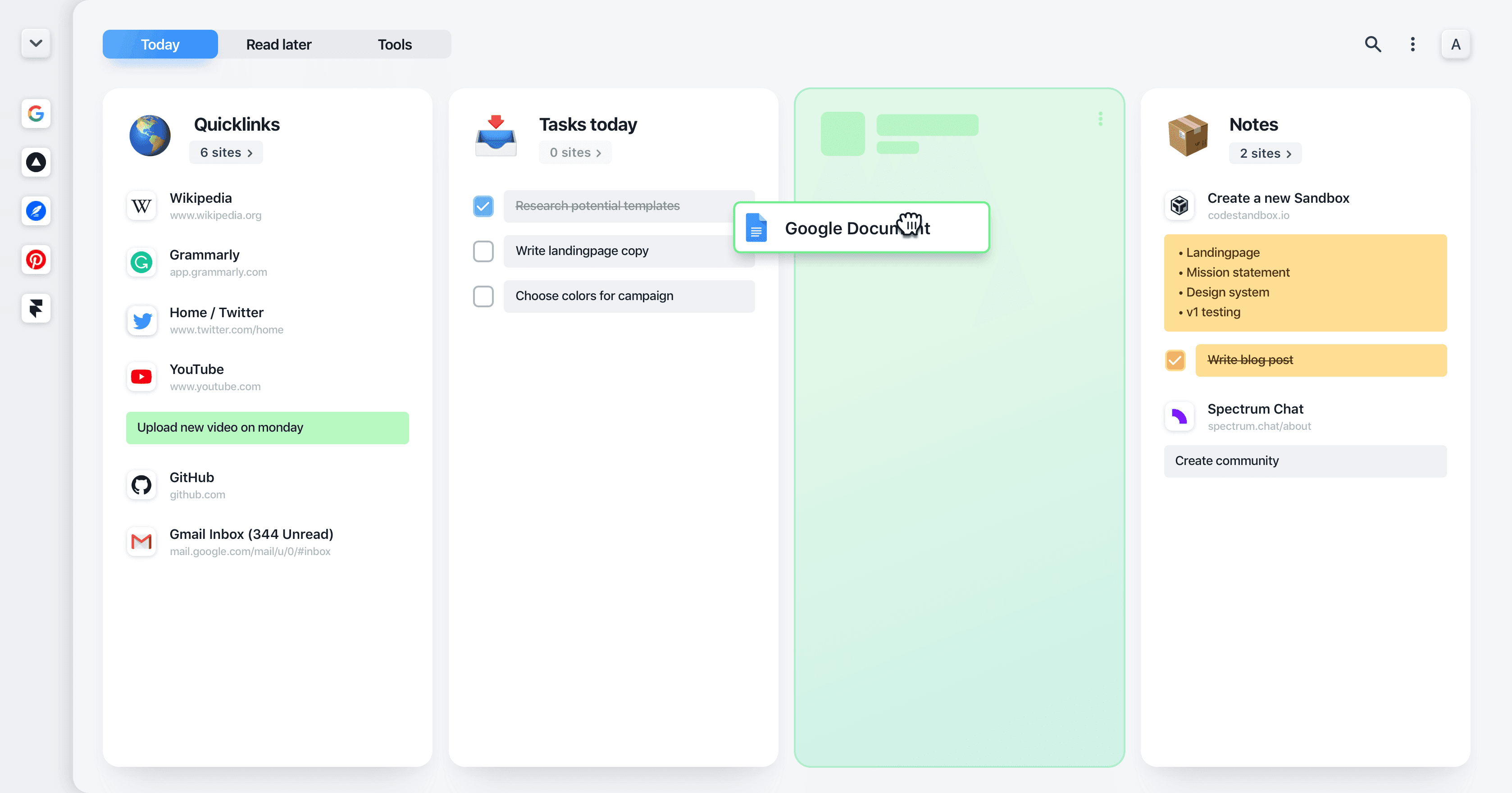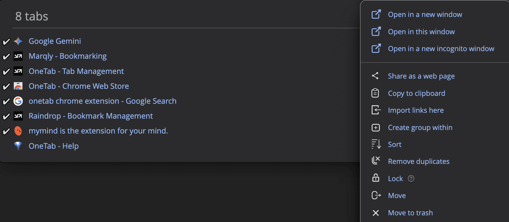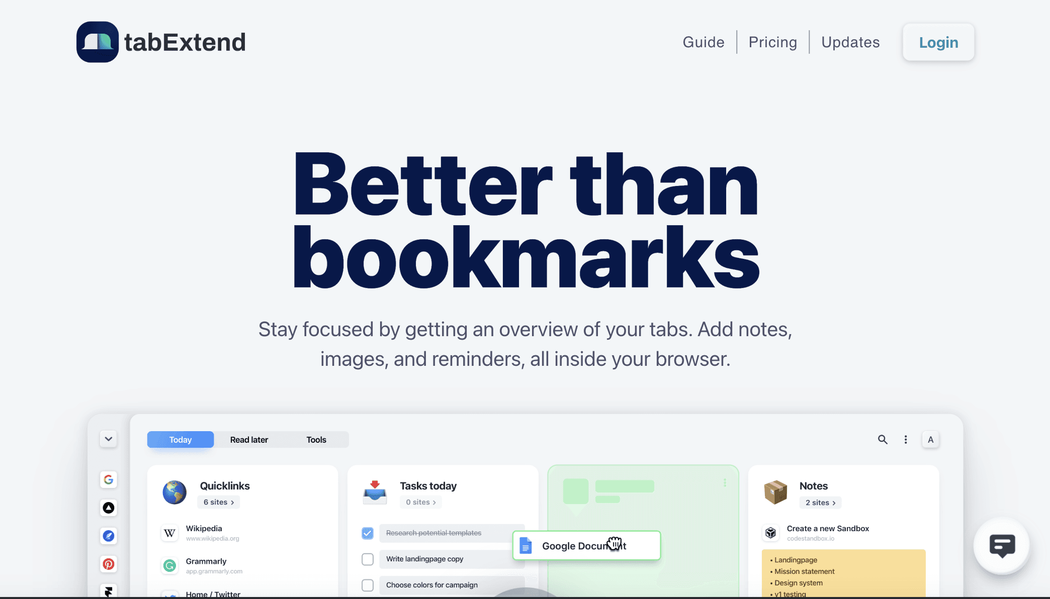 You can save tabs, group them, add notes, images, and reminders, all inside your browser. It feels more like a workspace than a bookmark list.