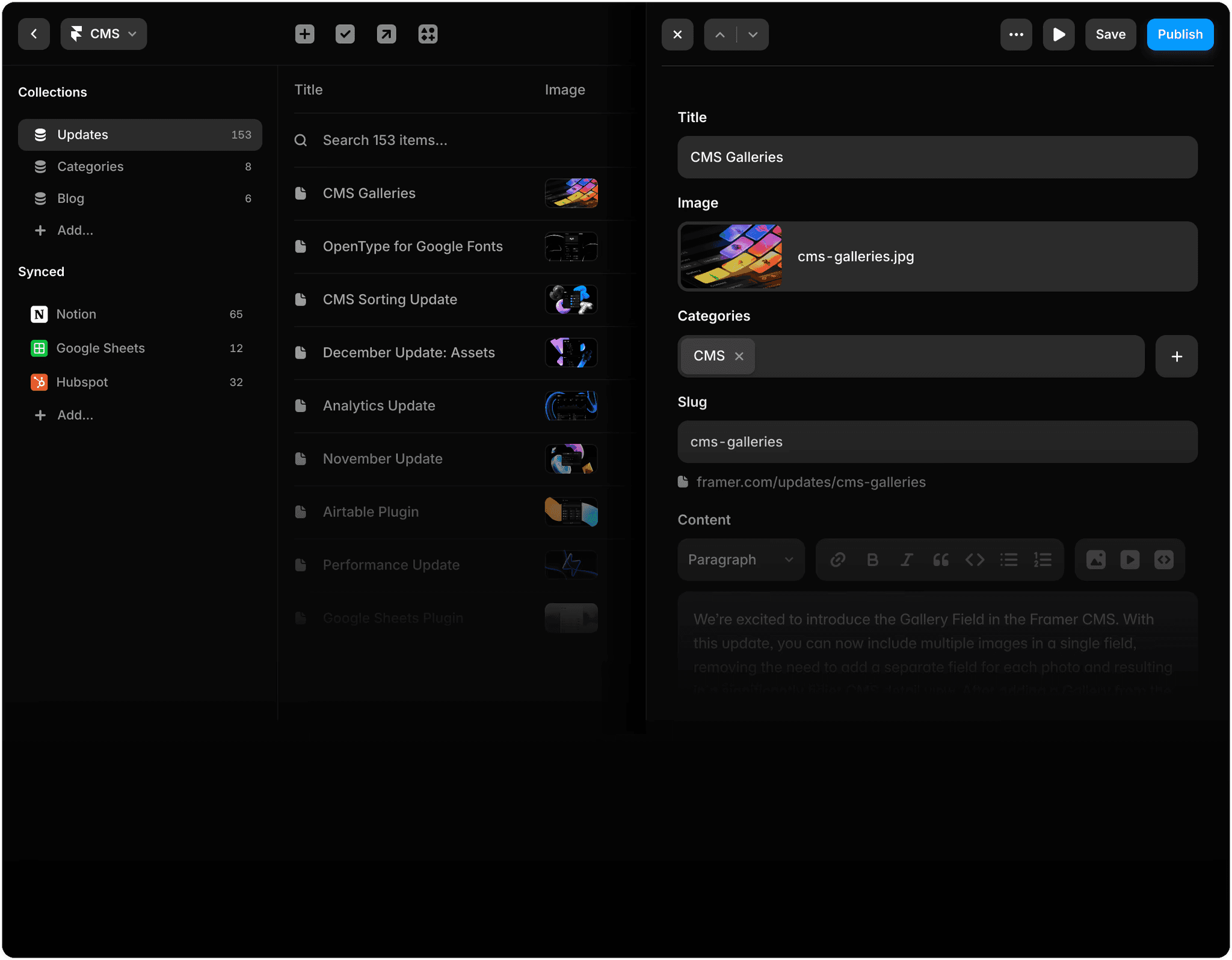 Publish designs instantly with built-in SEO, CMS, and performance tools