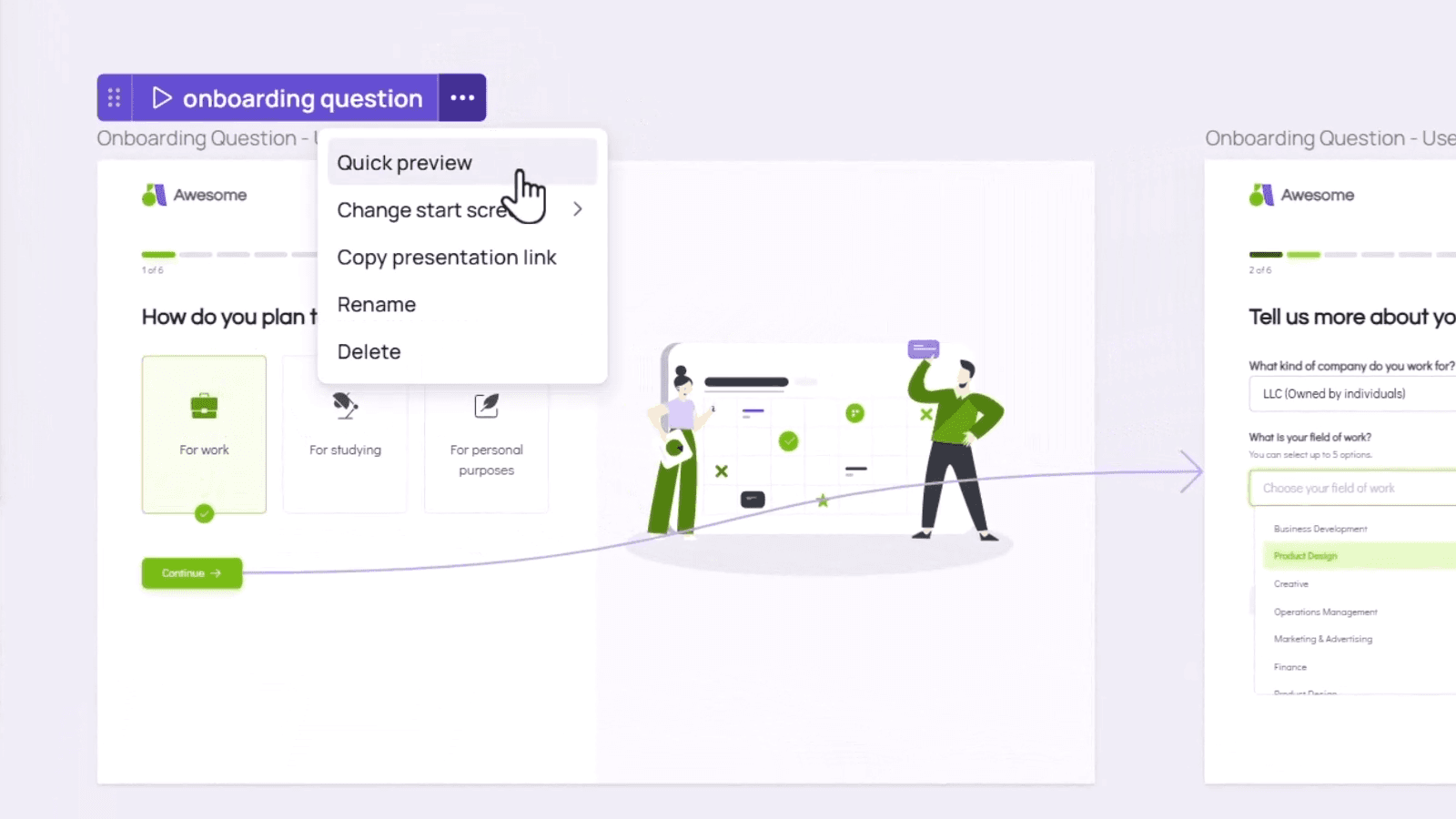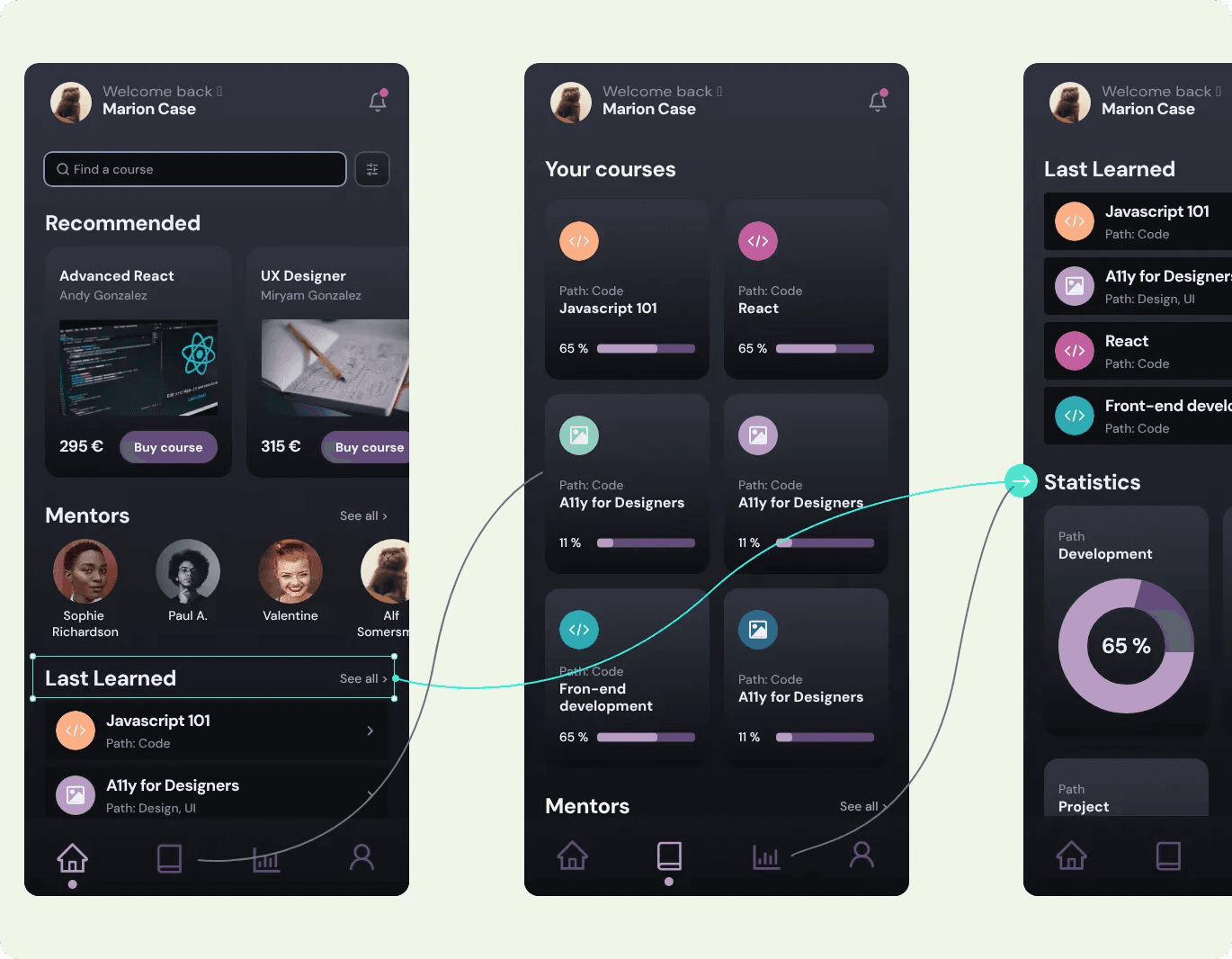 The platform lets you refine the AI-generated designs by editing components, adjusting layouts, or customizing visual styles. You can add interactions between screens using simple drag-and-drop tools, making it easy to test user journeys without setting up complex prototypes.