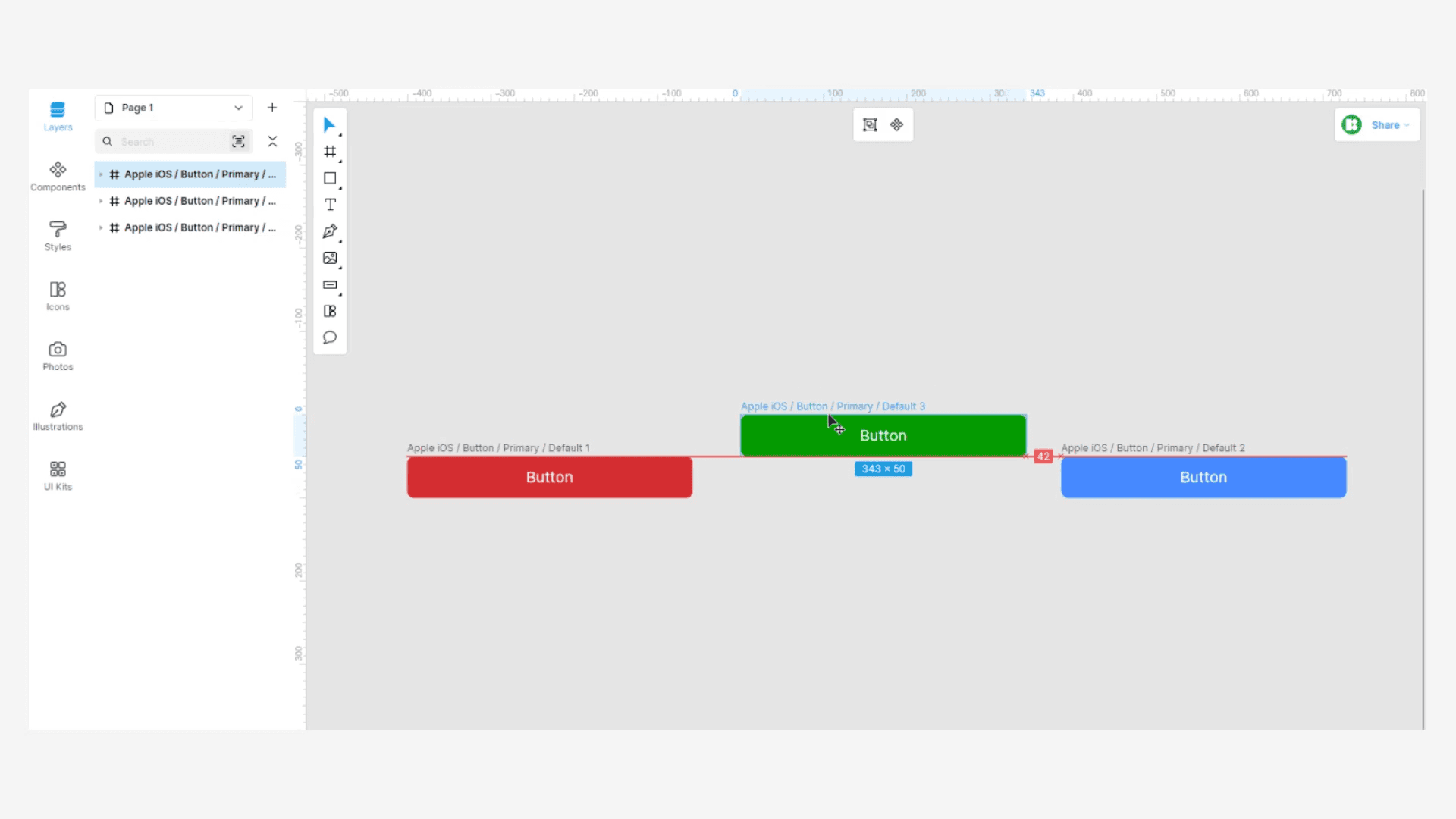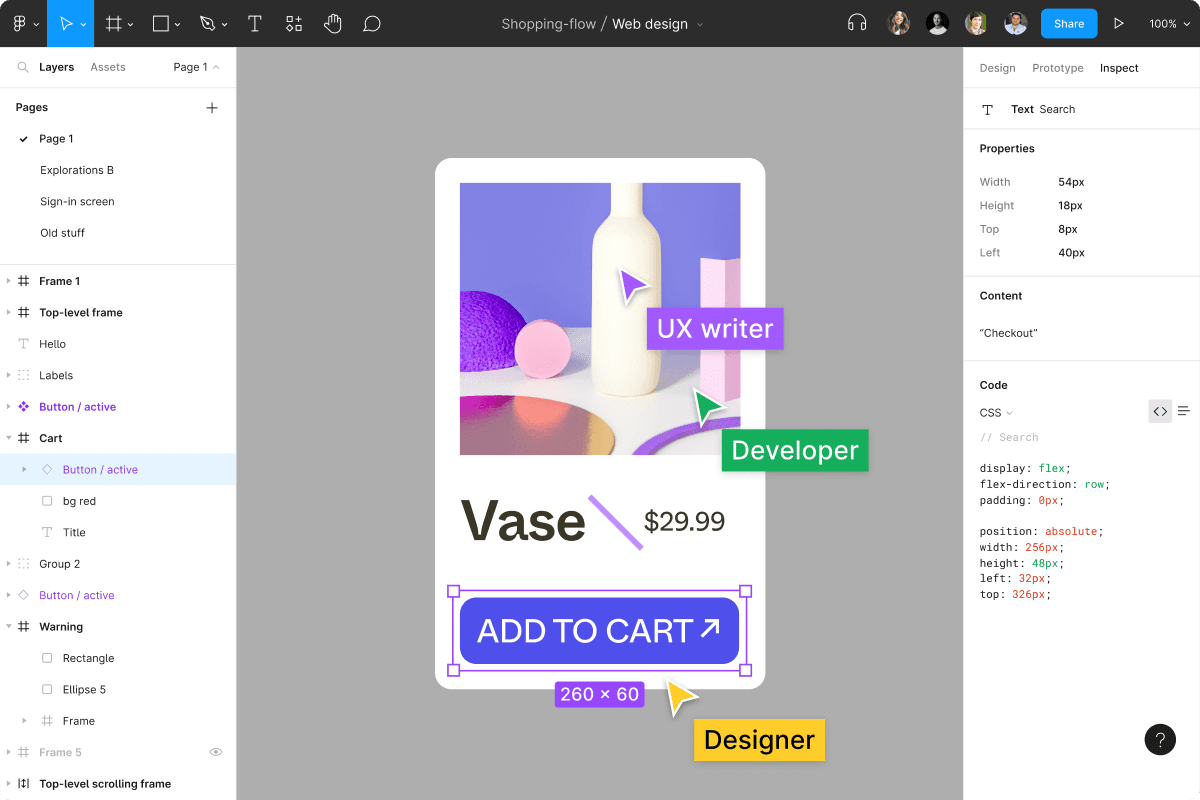 Prototyping, interactive flows, and design systems are built into the same environment, allowing teams to scale reusable components and tokens without extra plugins.