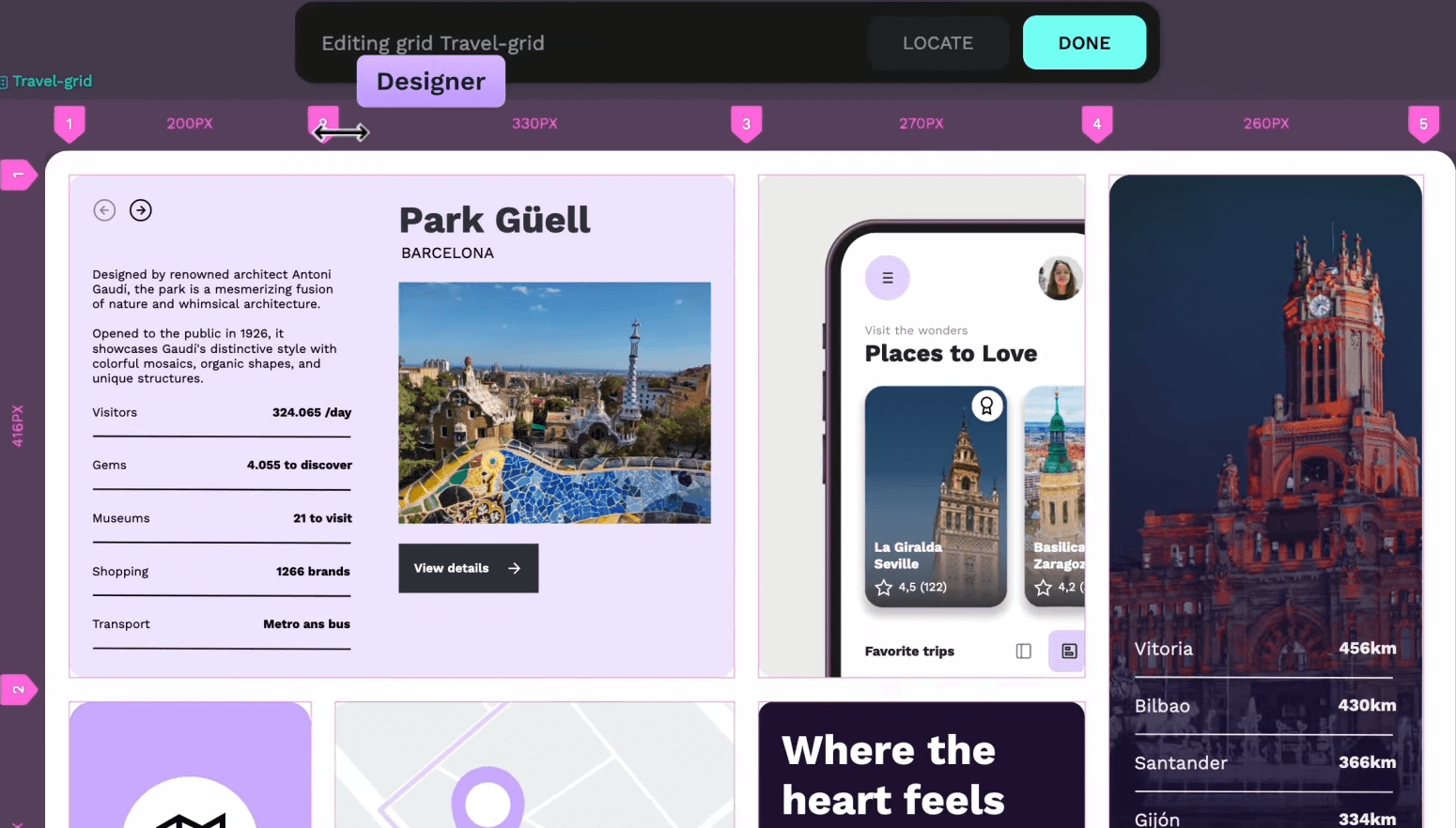 The platform supports responsive layouts through Flex and Grid features that follow real CSS behavior. This makes spacing, resizing, and structure more predictable and prepares designers for how components will behave in the final build.