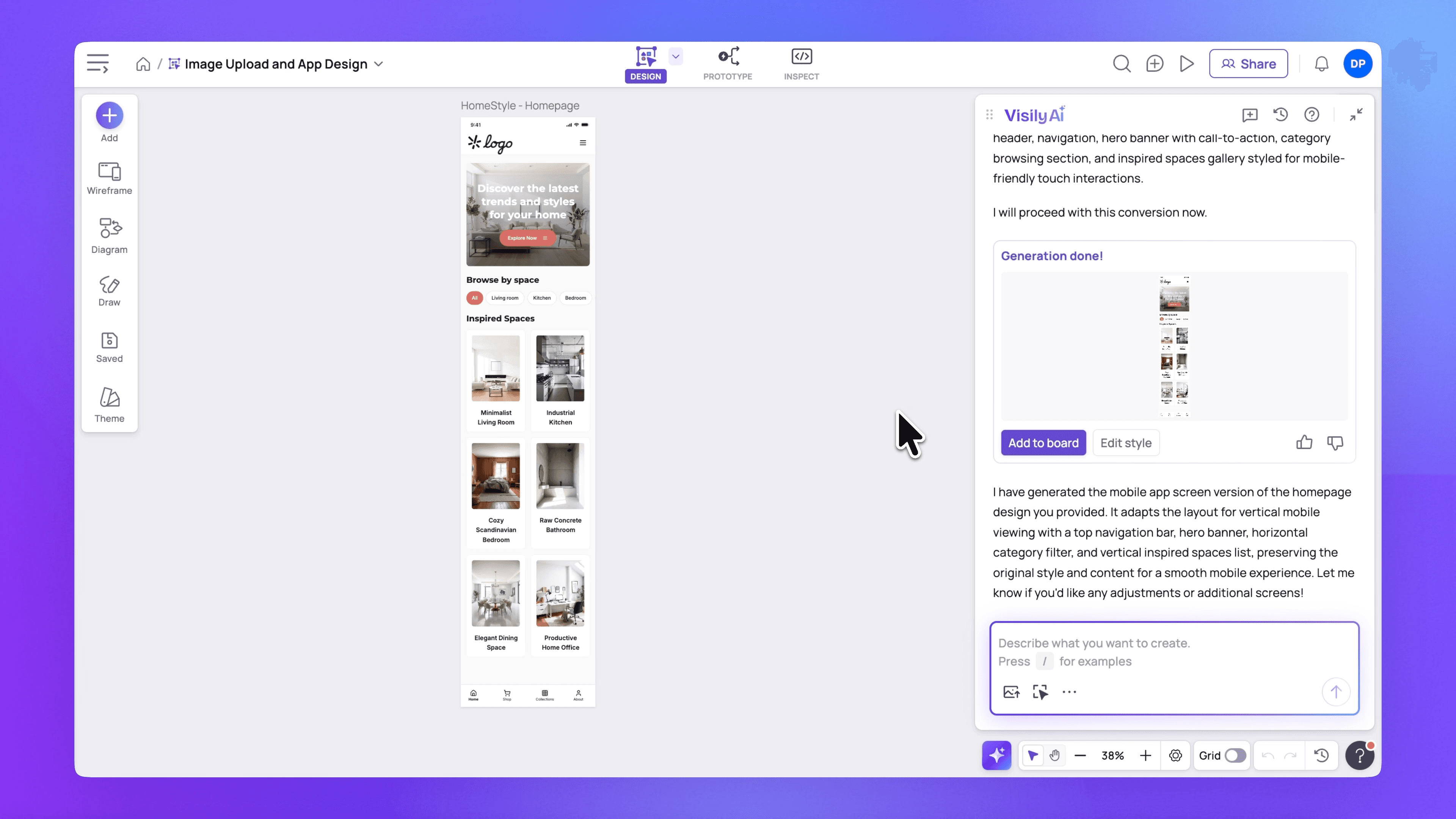 Visily then converts it into an editable layout that you can refine on the canvas. This helps teams align quickly, especially when early buy-in from clients or executives is critical.