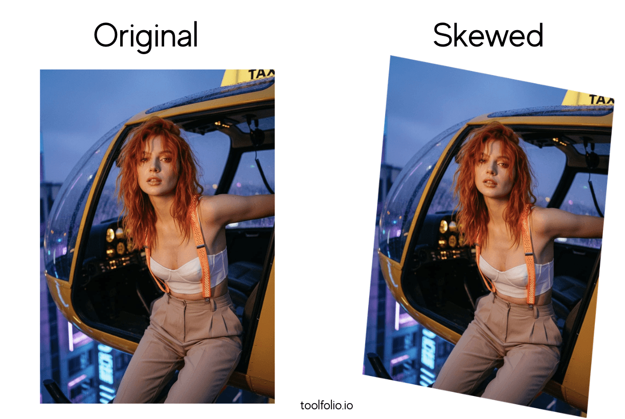 Skewing or changing perspective is the process of adjusting an image so its angles match a different viewpoint. Instead of keeping the image flat and straight, you pull or push the sides to make it look tilted or positioned in space.