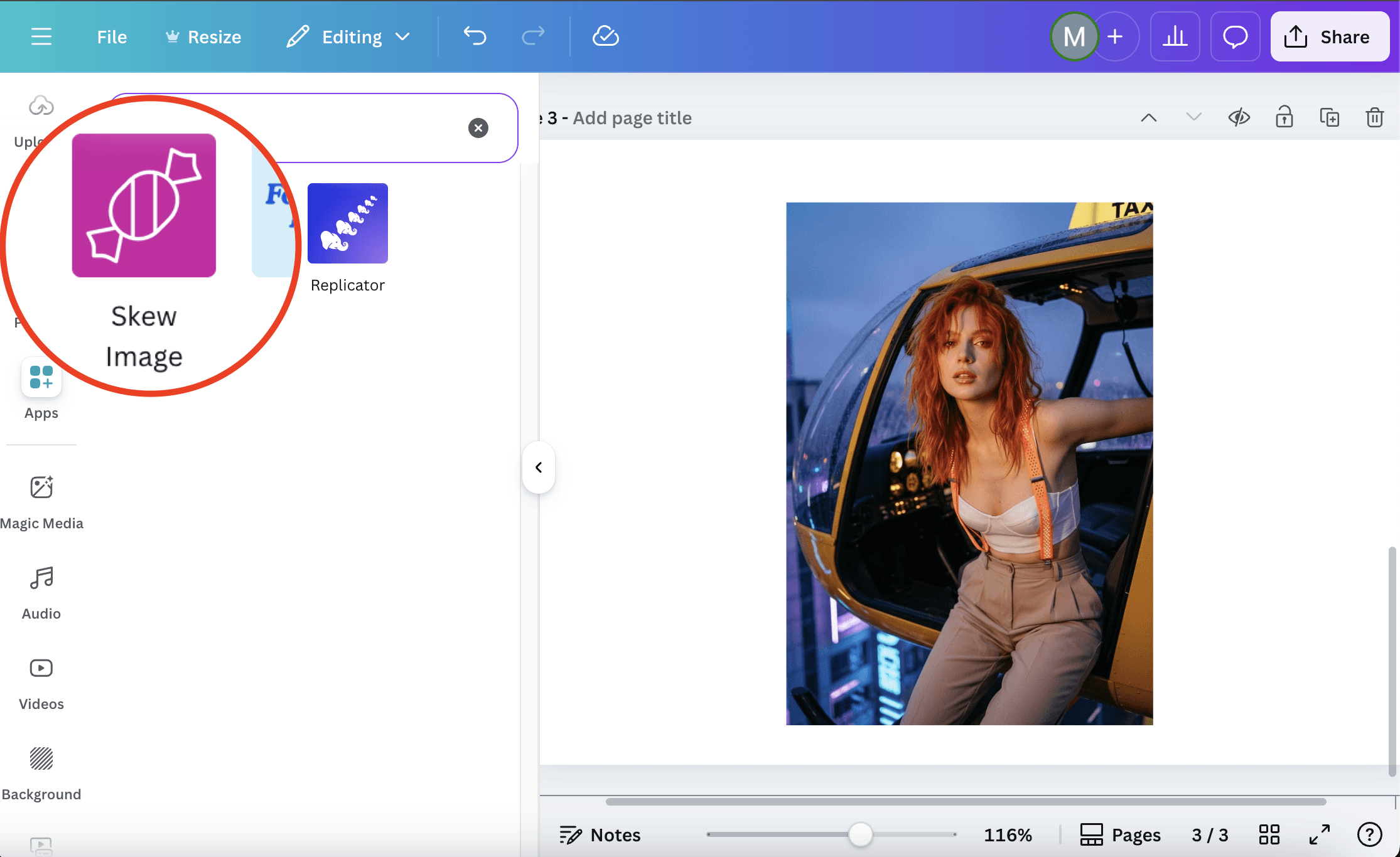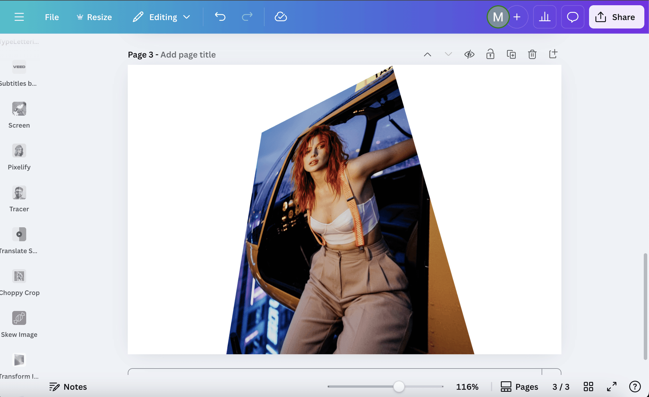 Click Add to Design to add the skewed image to the canvas. Resize and rotate the edited image to place it into your layout.