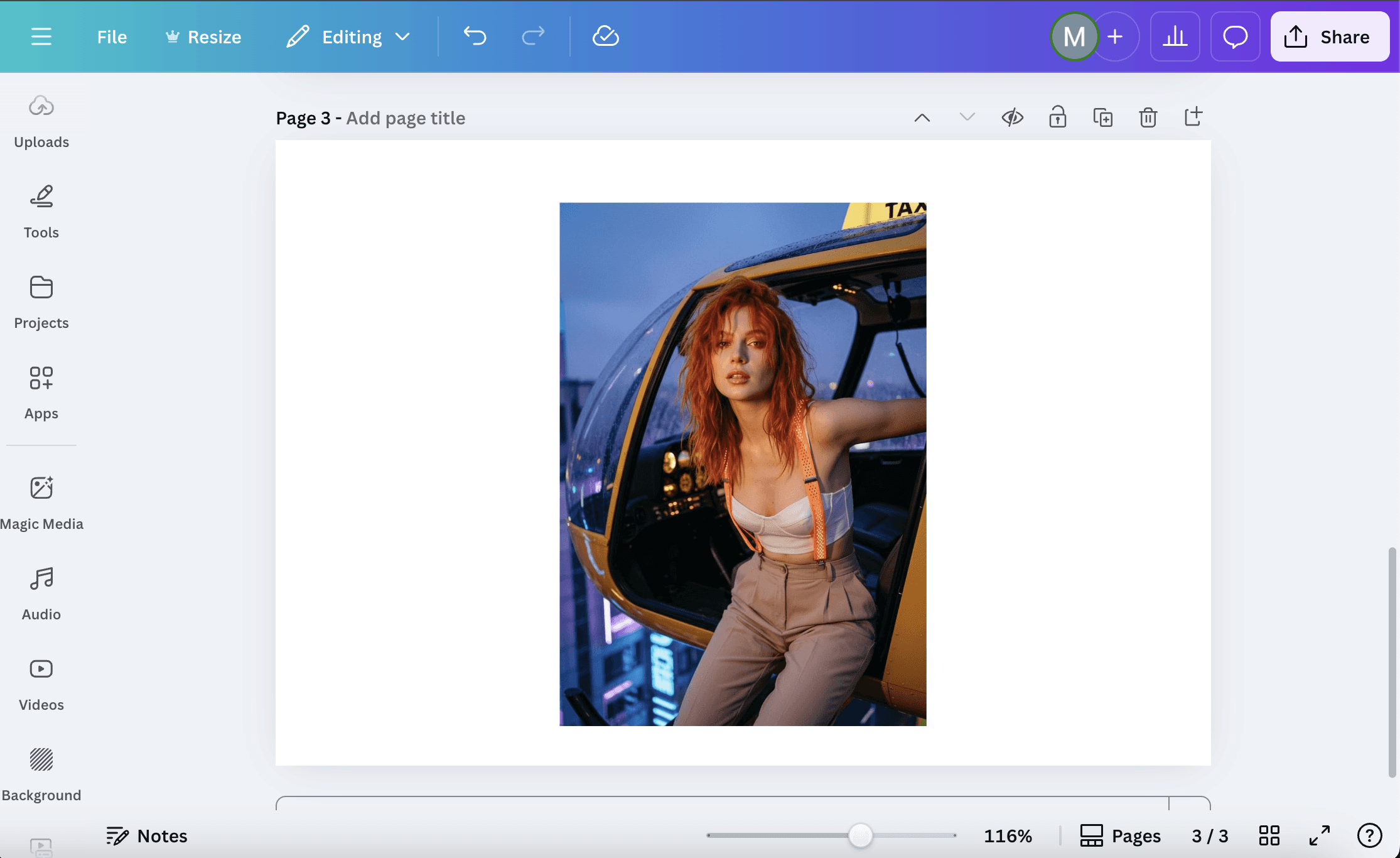Open Canva and create a new design. Upload your image or choose one from the Photos tab.