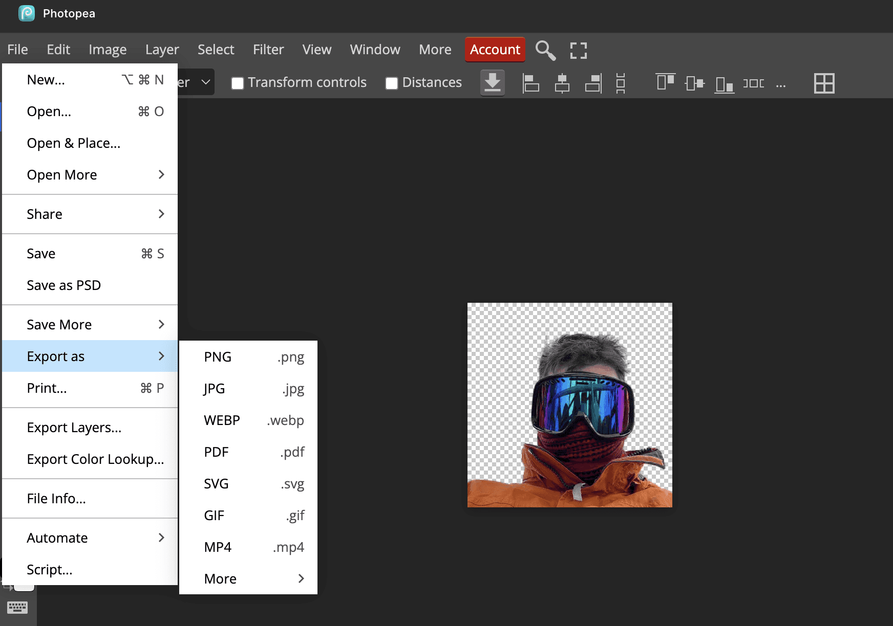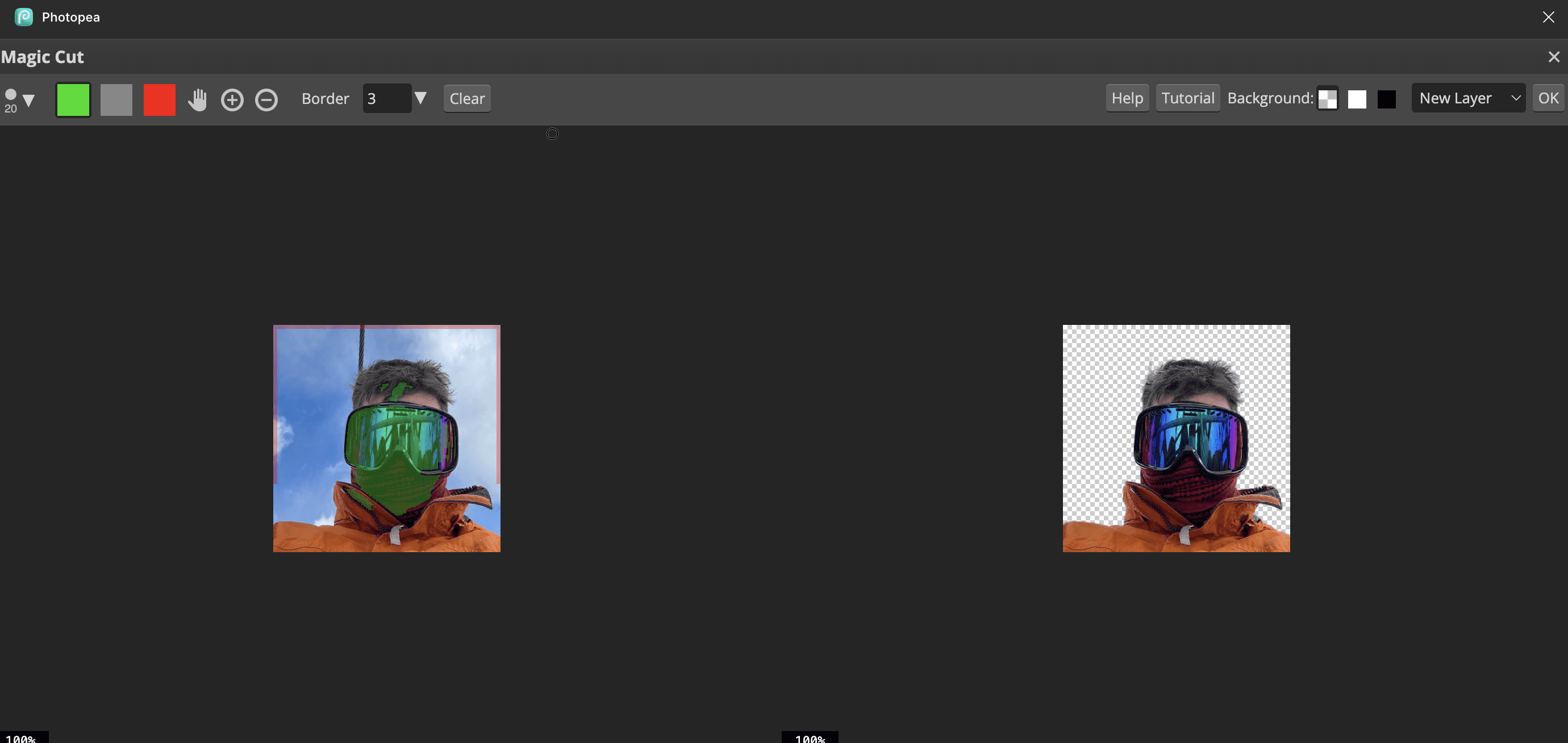 After removing the background and making any adjustments, confirm the changes inside Photopea.