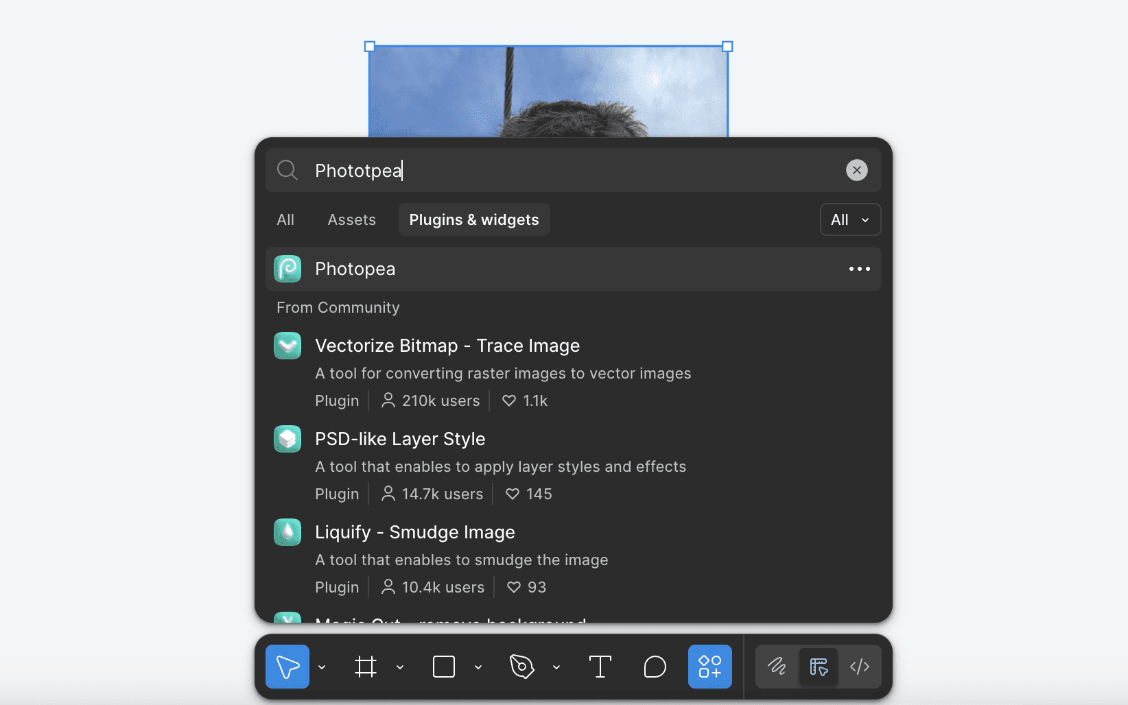 This loads the Photopea editor directly inside Figma so you can start working on your image right away.
