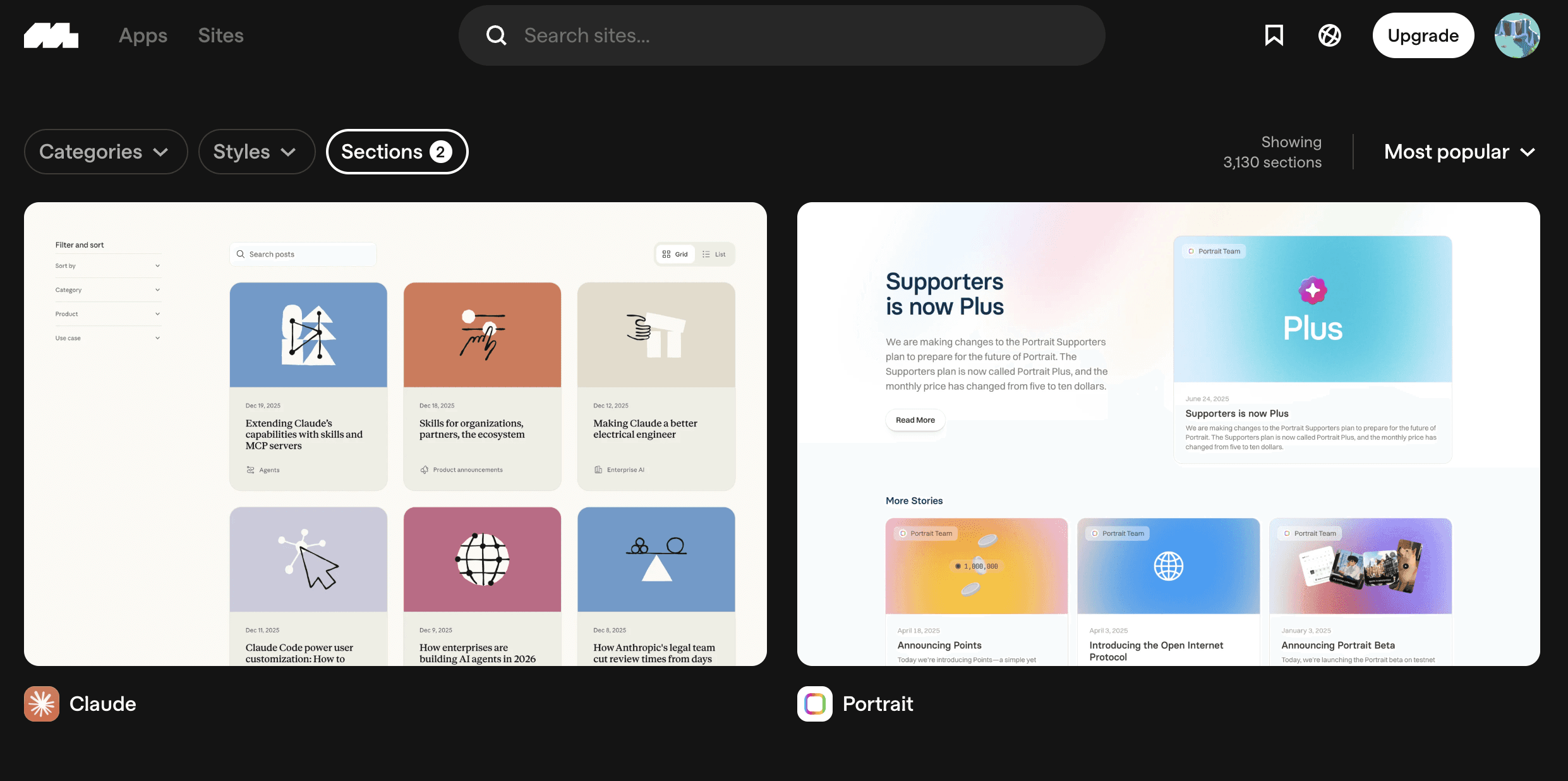 Refero is built for fast visual inspiration. It is best when you want layout ideas, UI patterns, or page structure without digging into full flows. It answers questions like how landing pages look, how dashboards are laid out, or how a section is visually designed.