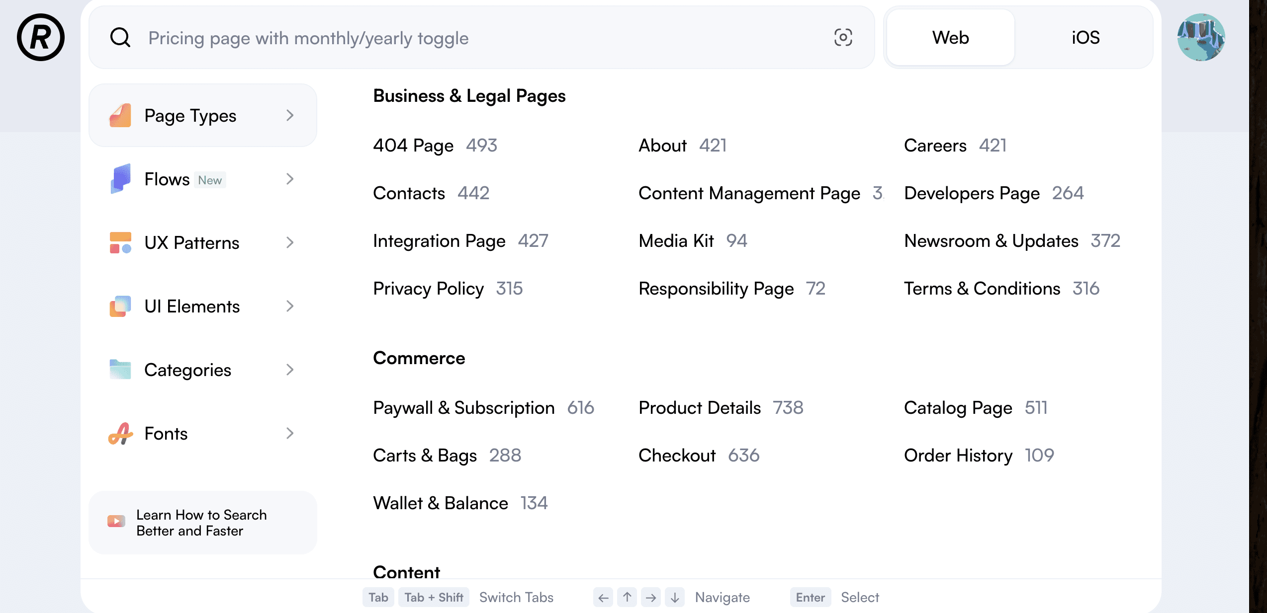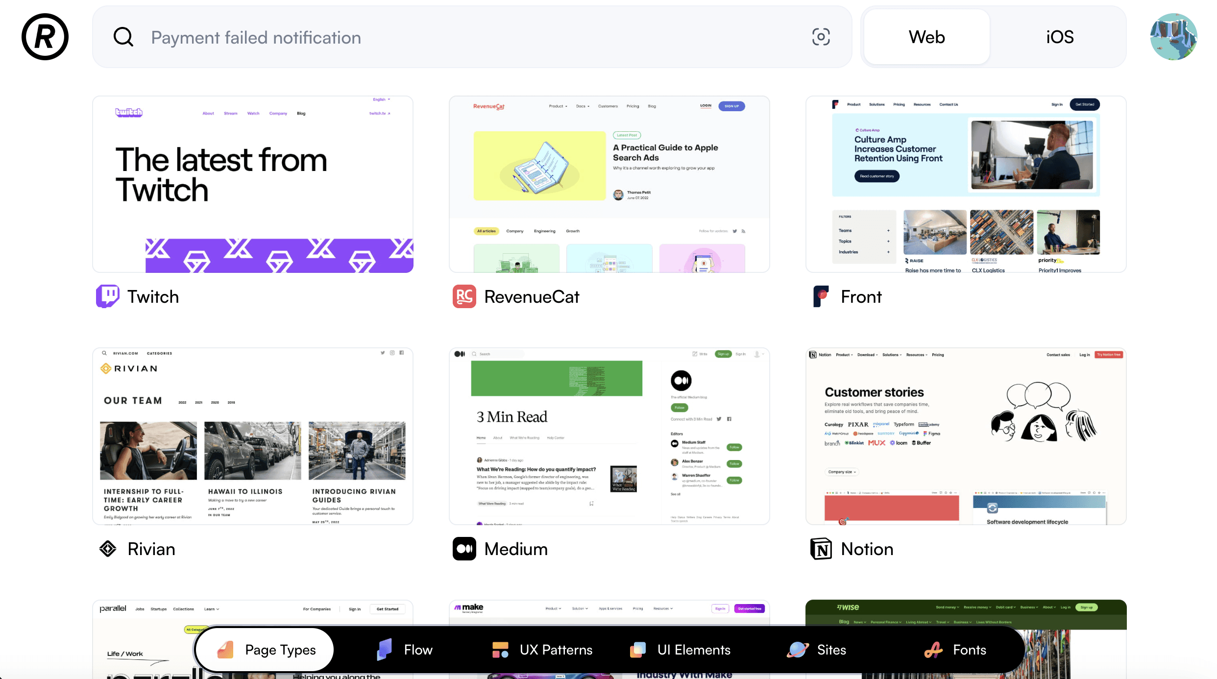 Refero also lets you switch between web and iOS with one click. This makes it easy to compare how the same ideas show up across platforms.