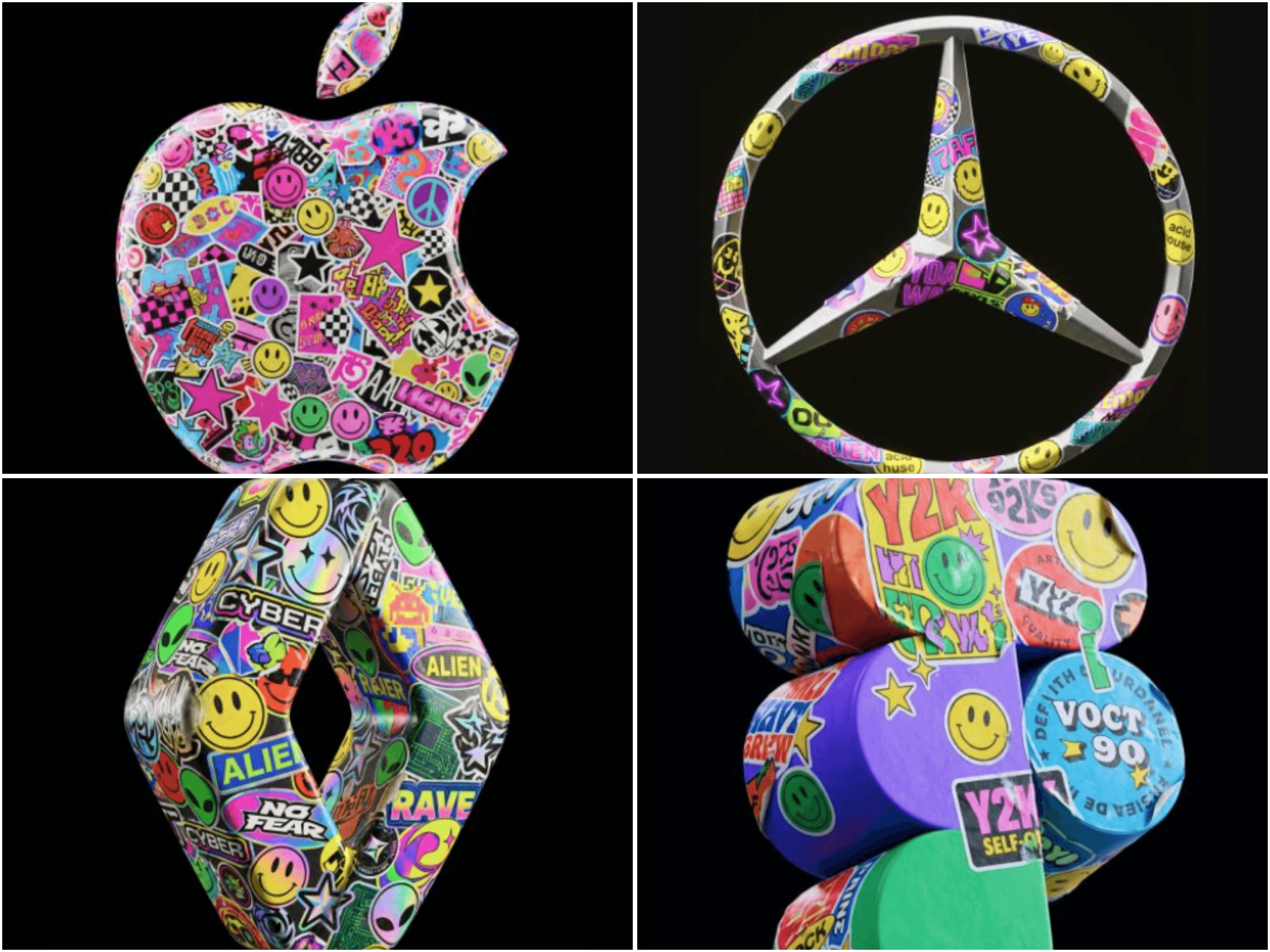 9. Sticker-Bombed 3D Logos and Stylized Characters