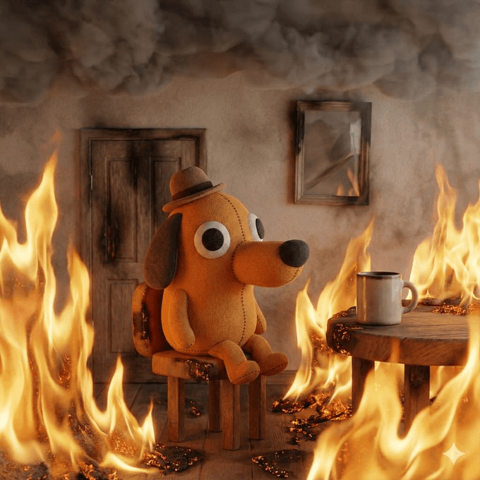 "Turn the drawn meme into a photorealistic 3D render. Keep composition identical. Convert the character into a plush toy with realistic lighting and materials."