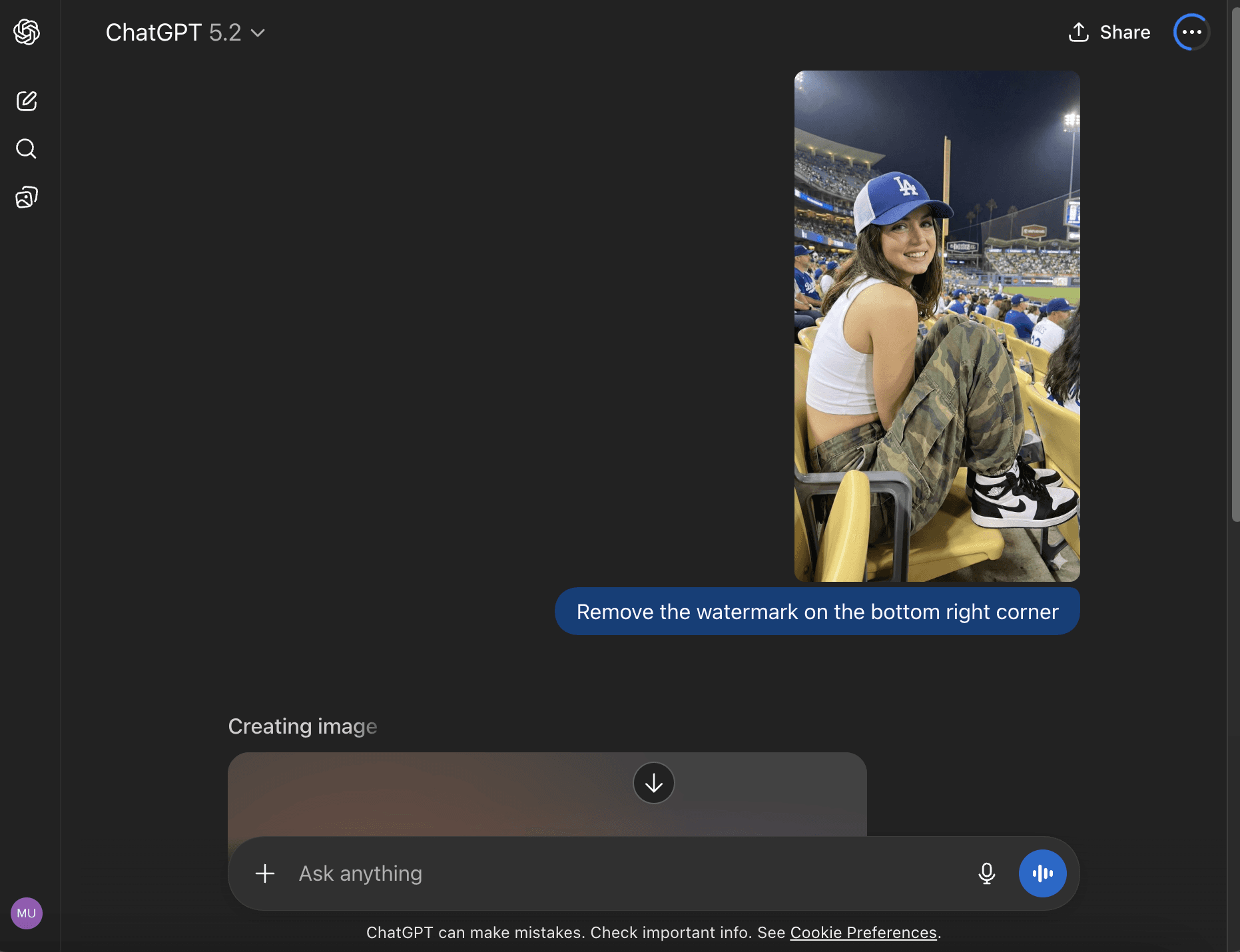 ChatGPT will return an updated image without the watermark. Download it and check the result.