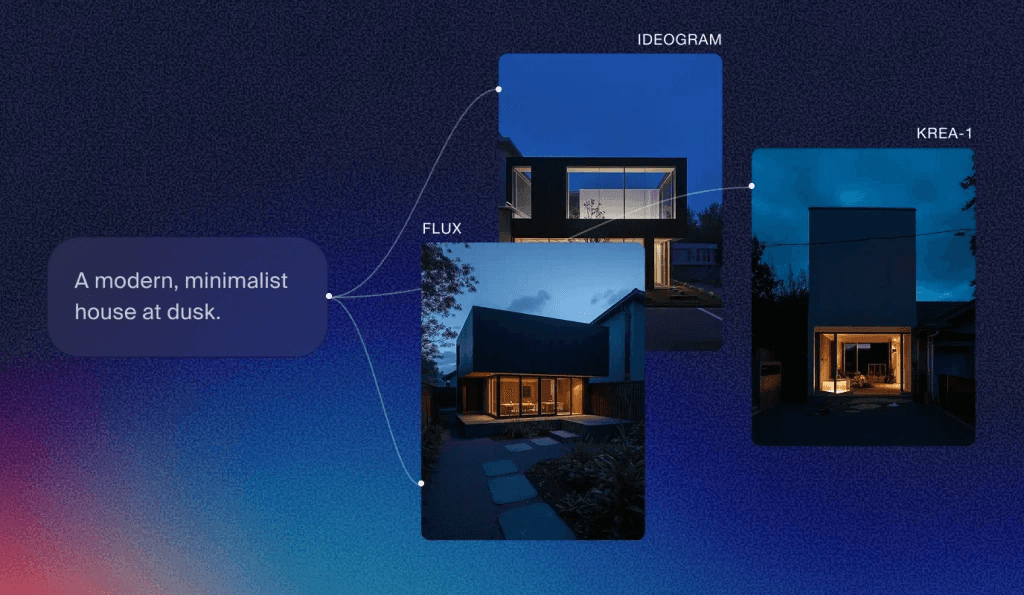 Start here if you've never touched a node editor before. Krea gives you 50+ models (images, video, audio, 3D) without making you feel like you need a computer science degree.